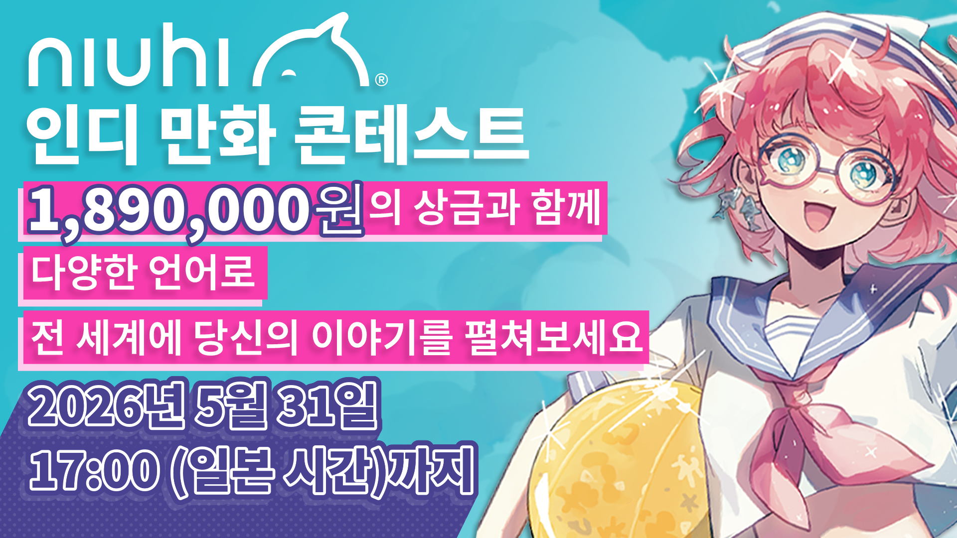 당신의 이야기를, 언어를 넘어 새로운 만화 팬들에게. 지금 바로 NIUHI 인디 만화 콘테스트에 참여해, 당신의 아이디어를 기회로 만들어보세요!